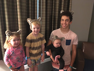 We finally made our first venture to Great Wold Lodge. This was the first week in October. It was an experience. We went with Caleb and Annie and their family. The slides were fun; even though the lazy river wasn't running. There were a couple of slides that were not running as well. Todd had a great time going down the slides. There were a couple slides that required group tubes. Sheri and I went on this. I was going backwards and it seems we went down a deep drop which caught me unawares. There was a small slide place for Hadley to play. The wave maker was fun. There were also lots of water play toys for squirting water. They gave us ears for each of us. The hotel was very maculate. The nicest I have stayed in for some time. It was a suite with two different bedrooms and then a pull down bed in the living area. It also had a small kitchen. There were also facilities in the hotel, miniature golf, rope course and games. The lodge was crowded but fun.