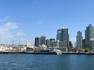 With the San Diego Package we decided to go on the bay cruise. This included seeing the San Diego skyline, and the Navy operations in the bay. The depth of the bay had to be dredged and the material was placed strategically to allow for recreation. We had a fun time floating and taking pictures. Coronado Island is really not and island as it connects at one point. Most of the Navy fleet is moored on the other side of the bridge but the aircraft carriers are too tall to get under the bridge. There was lots of helicopter activity--both Navy and Marine.
